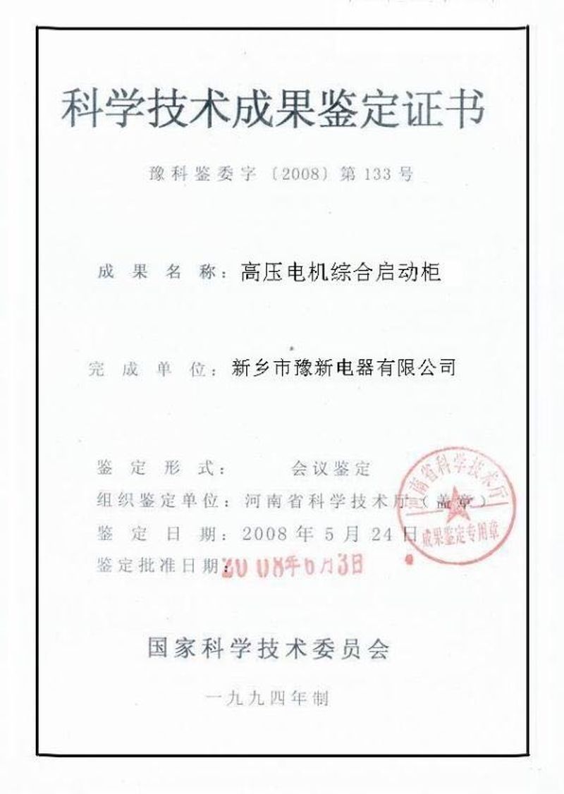科學(xué)技術(shù)成果鑒定證書